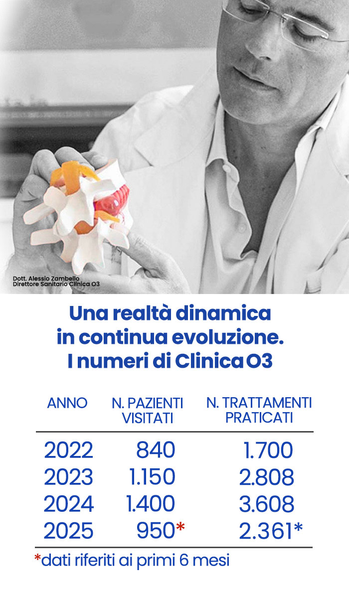 L’unicità di Clinica O3 e l’esperienza indiscussa dei nostri medici, ci hanno permesso di trattare oltre 7000 pazienti in 3 anni, con percentuali di successo che sfiorano il 90% dei casi trattati.